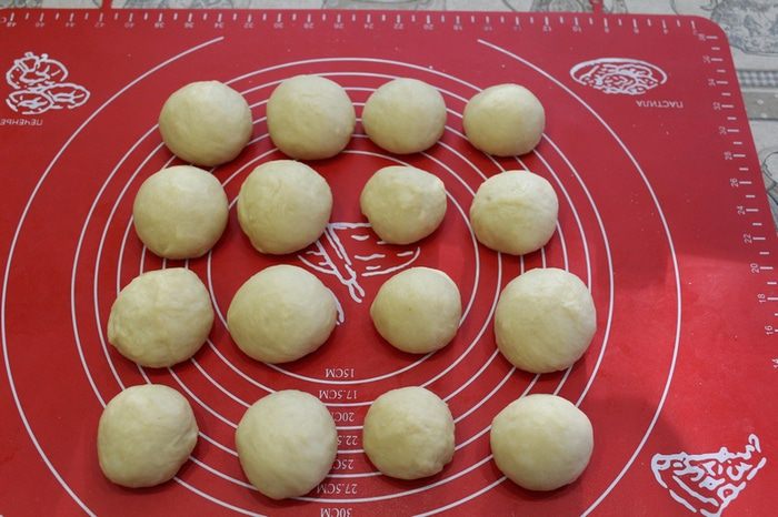 Затем разделить тесто на 16 равных частей.