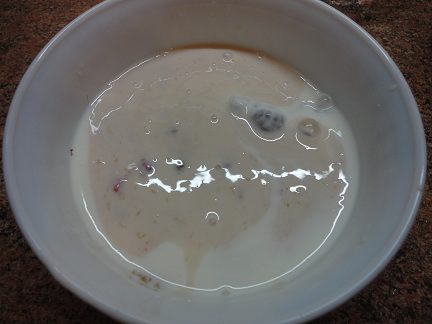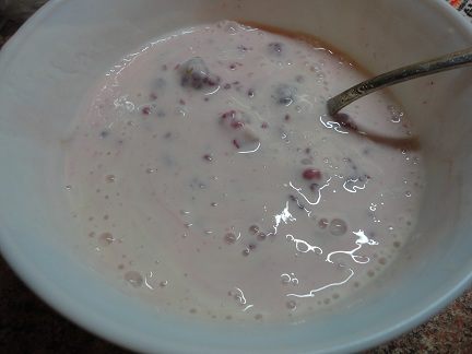 Йогурт с ягодой слегка перемешать.