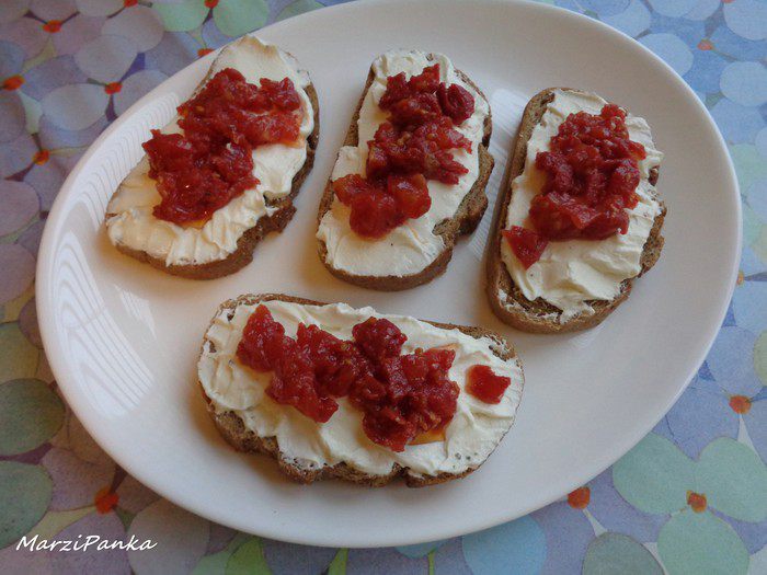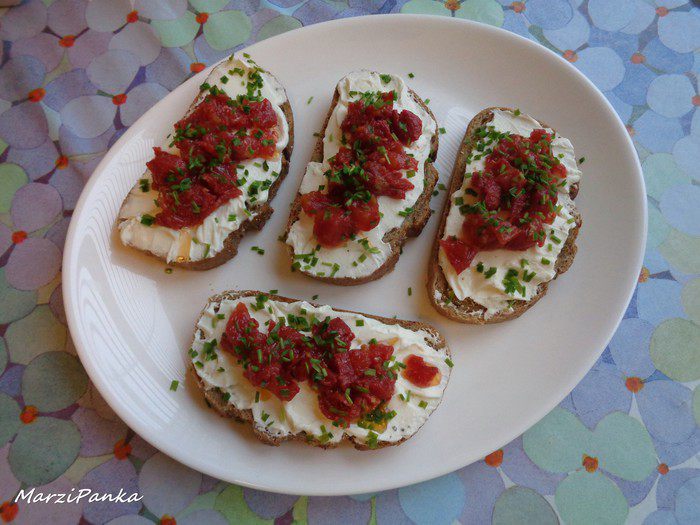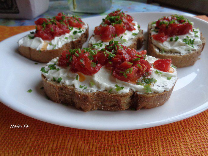 Открытые бутерброды с творогом и сушеными томатами
