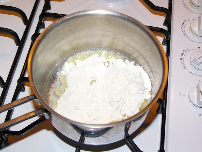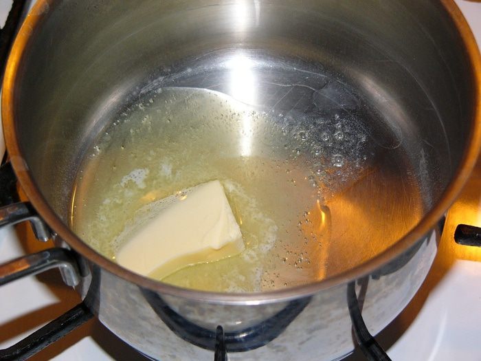 Для соуса Бешамель растопите в небольшой кастрюльке сливочное масло.