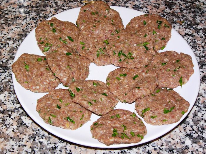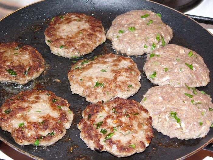 Слепите из фарша круглые плоские котлеты, как для гамбургеров.