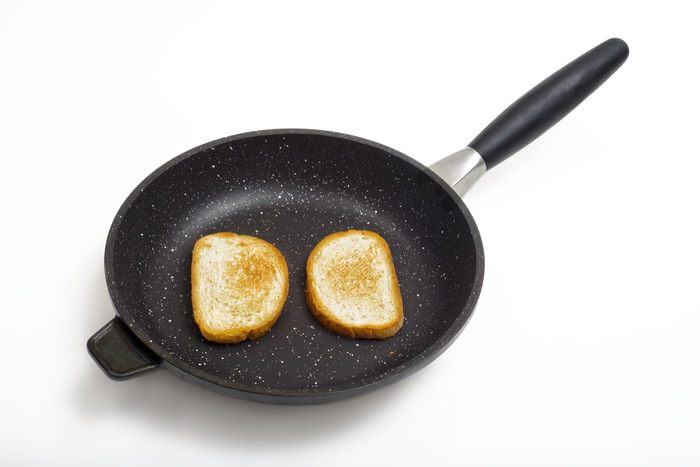 Ломтики хлеба для сэндвичей обжарить на разогретой сковороде (без масла).