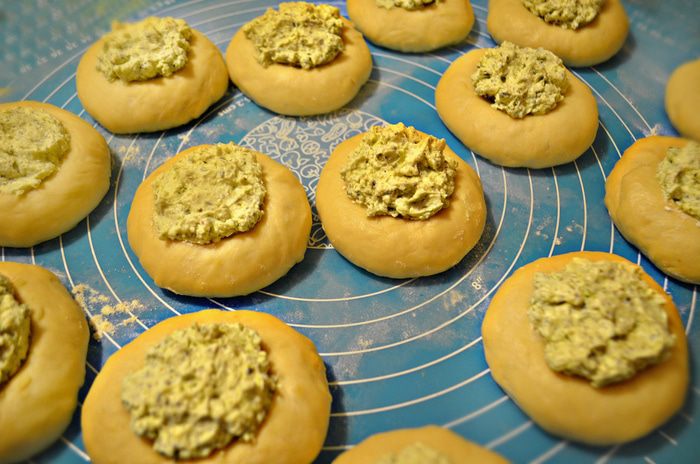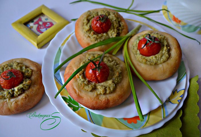 Предлагаю вам приготовить очень вкусные и необычные ватрушки. Времени на их приготовление потребуется не мало, поэтому, если вы хотите угоститься ими на завтрак, то лучше приготовить с вечера. Порция достаточно большая, так что при желании вы смело можете её уменьшить вдвое. В рецепте используется соус песто, если у вас такового нет, то можно смело заменить вашей любимой мелко рубленной зеленью. Приступим!