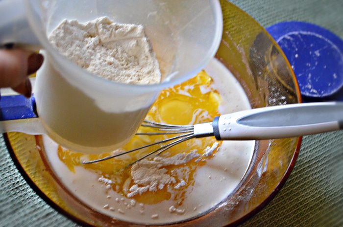 Затем добавьте яйца, соль, растопленное сливочное масло. Постепенно всыпьте просеянную муку и замесите гладкое эластичное тесто.