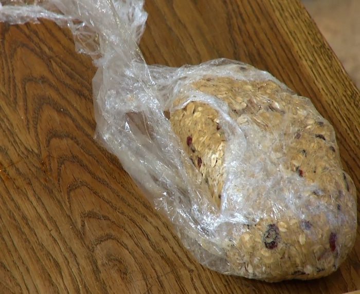 Сформировать из теста шар, завернуть его в пищевую пленку и отправить в холодильник на 30 минут.