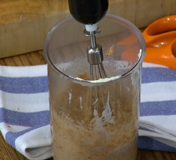 Предварительно размягченное сливочное масло слегка взбить в блендере на низкой скорости насадкой-венчиком, добавить разведенный в воде мусковадо, коричневый сахар, яйцо и взбить все в однородную массу.