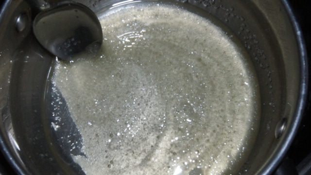 В кастрюльке нагреть масло, мед и сахар. Не доводить до кипения.