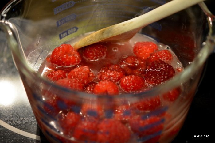 Добавить малину свежую, очищенную. Перемешать и дать постоять 30 минут.