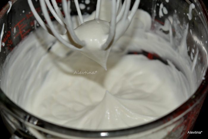 Сливки взбить до мягких пиков.