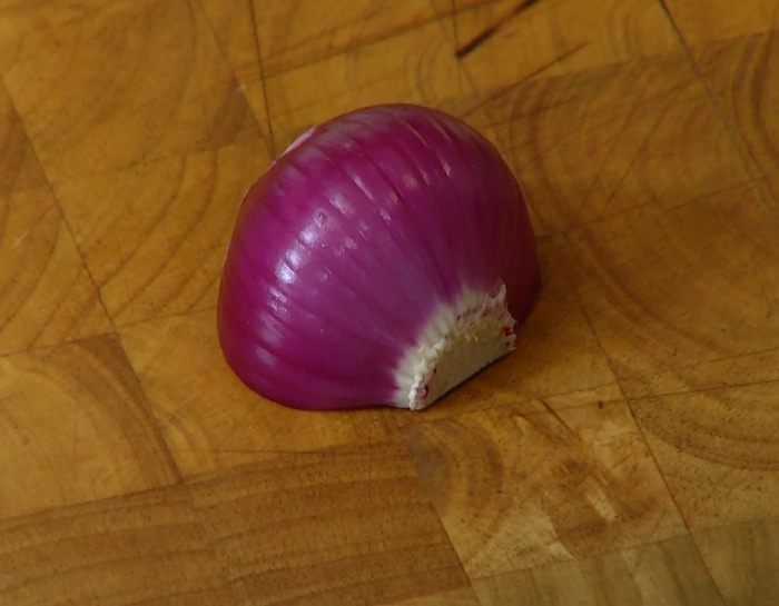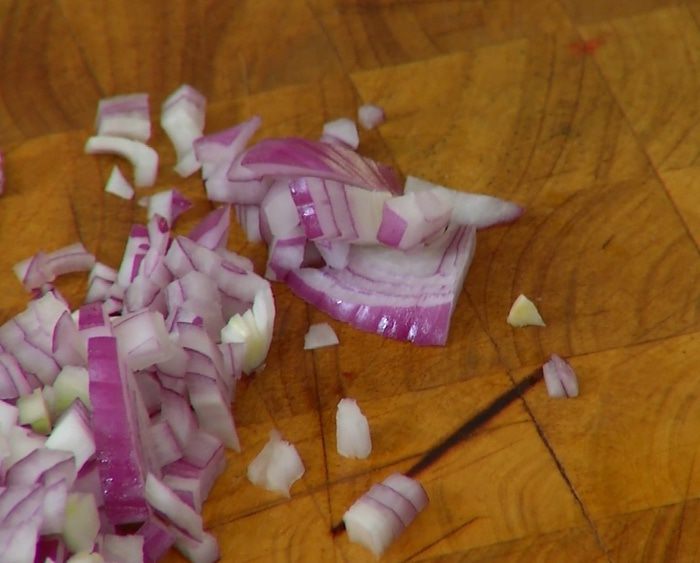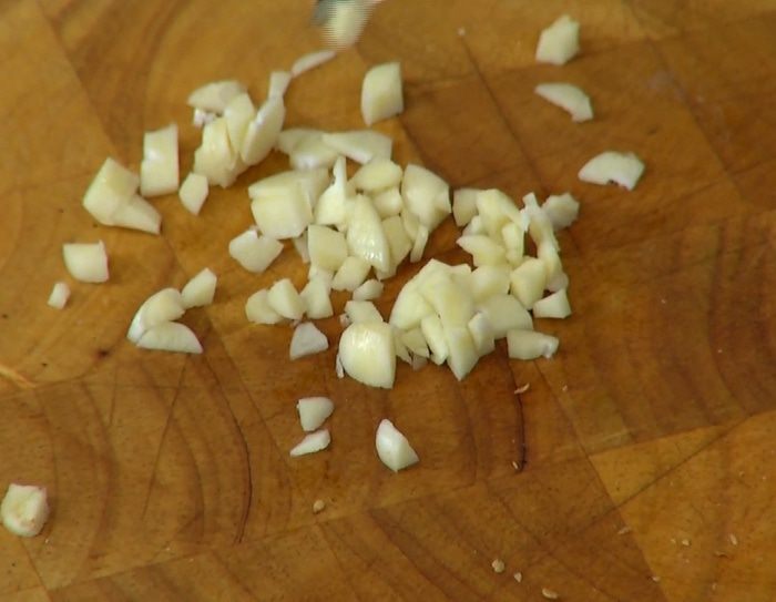 Оставшуюся половинку луковицы и зубчик чеснока почистить и мелко порубить.