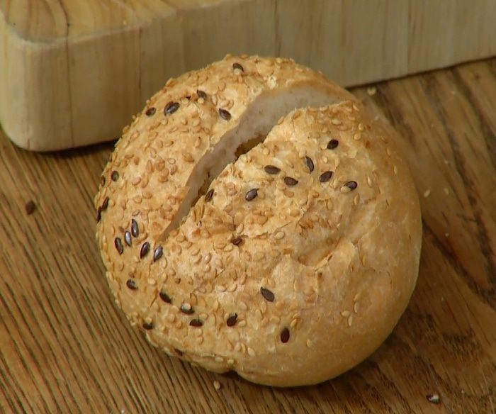 Надрезать булочки сверху, не прорезая до конца, и вынуть мякиш, чтобы получился карман. В каждую булочку вложить пару тефтелей с соусом и посыпать оставшимся натертым сыром.