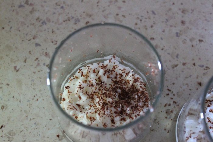 На дно креманки или бокала кладем по 1 ст. л. готовой каши, сверху натираем шоколад.