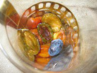 В кувшин положить фрукты и залить горячим чаем.