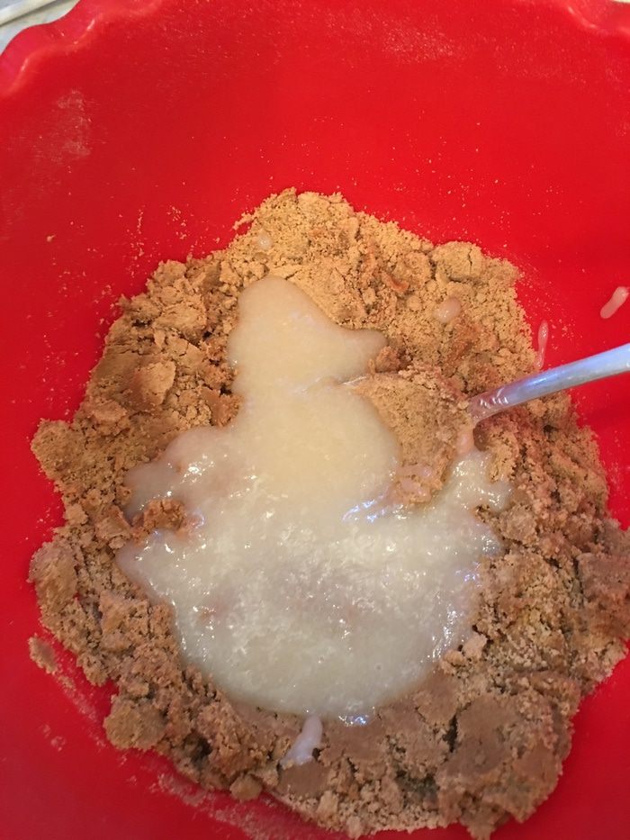 К кунжутной смеси добавляем масло и теплый молочный сироп.