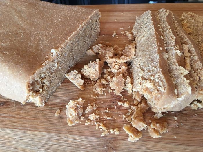 Всё перемешиваем в однородную массу и перекладываем в контейнер обложенный пергаментом. Прессуем в нужную форму. Даем халве подсохнуть (1-2 часа достаточно).