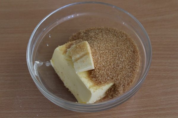 Размягченное масло смешать с коричневым сахаром.