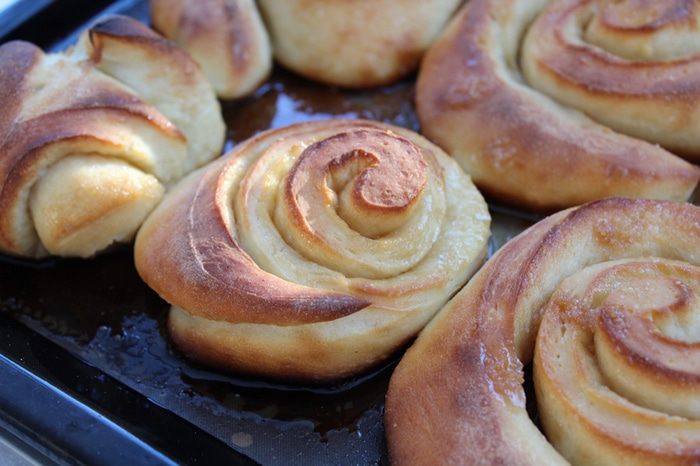 Очень вкусные булочки, мягкие, воздушные, слоистые внутри с карамельной начинкой.