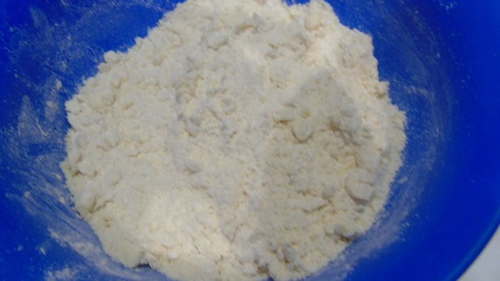 В муку добавить соль, сахар и сливочное масло, перетереть в крошку.