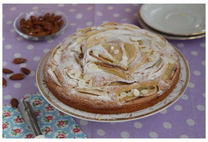 Нежный пирог с ароматом миндаля и кусочками яблок.