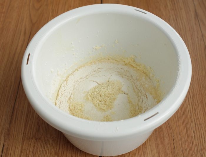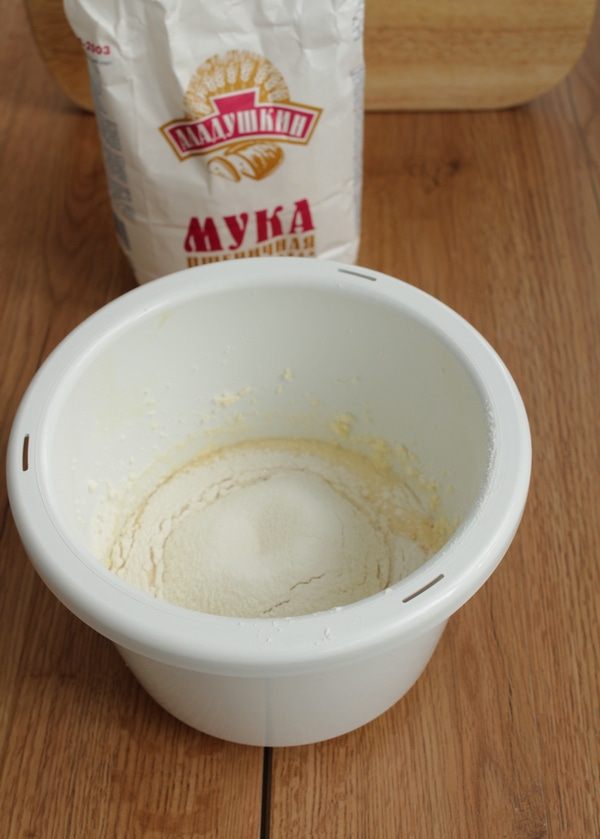 Просейте муку с разрыхлителем.