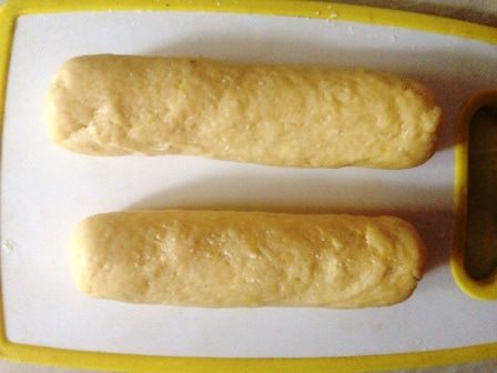 Скатать из него колбаску и разделить ее на 16 равных частей.