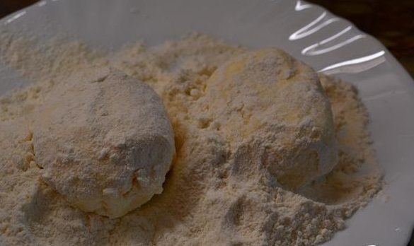 Сформировать сырники мокрыми руками, обвалять в муке. Обжарить сырники с двух сторон на раскаленной сковороде с небольшим количеством постного масла.