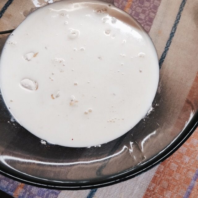 Добавляем молоко и мёд, тщательно размешиваем и оставляем тесто на пару минут.