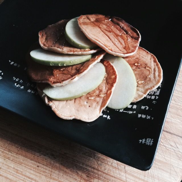 Подаем панкейки с медом, вареньем или кленовым сиропом, украшаем ягодами, яблоками или другими фруктами.