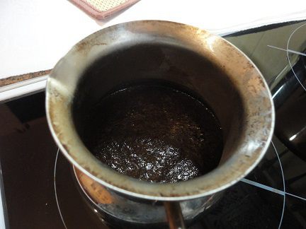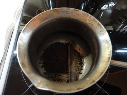 В турку всыпать сахар, свежемолотый кофе, гвоздику и корицу.