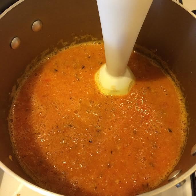 Затем пюрировать суп блендером, посолить и добавить орегано.