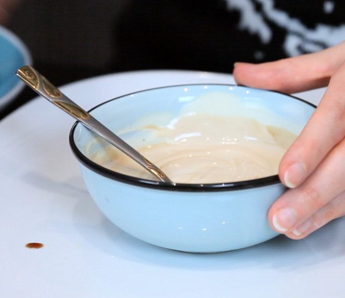 Соединить для соуса сметану, горчицу, уксус, оставшееся масло, соль и перец.