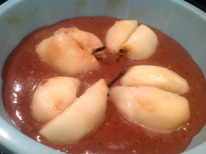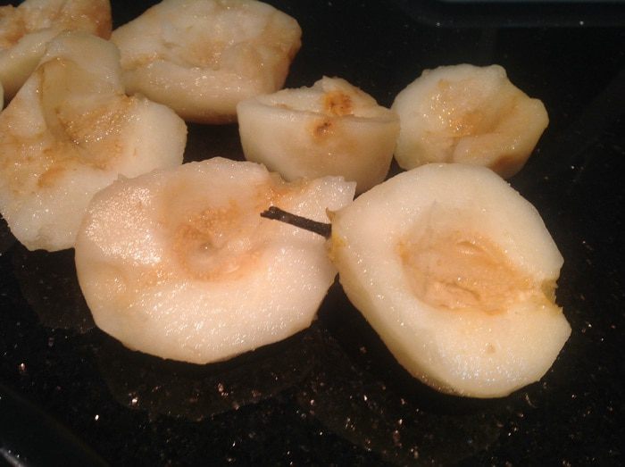 Духовку разогрейте до 180°С. Груши очистите, удалите середину, оставив хвостик.