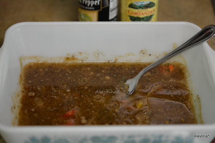 Приготовим маринад: выжать сок лайма, добавить кориандр, масло, соль, зелень и перец черный.