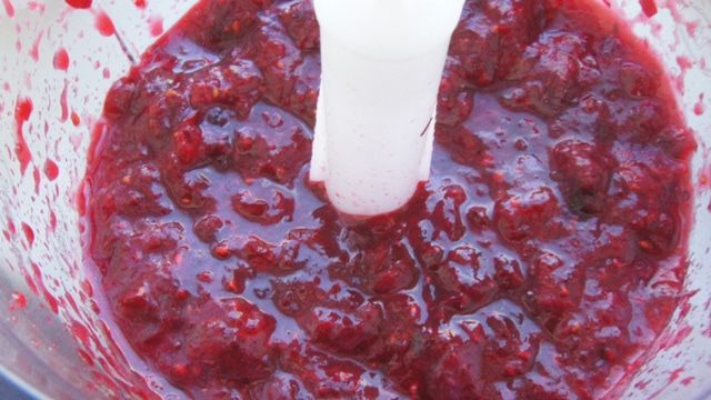 Измельчить клюкву в комбайне или в мясорубке.