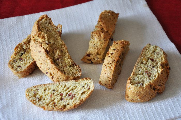 Выпекать при 180°С около 20 минут. Вытащить, остудить минут 5. Нарезать ножом наискосок и снова поставить в духовку минут на 20. Готовые бискотти остудить на решетке.
