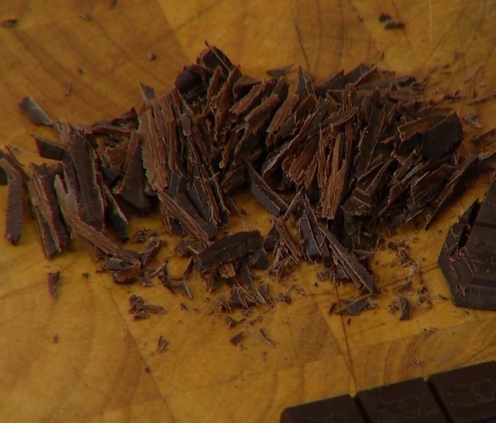 В застывшее мороженое добавить шоколадную стружку и перемешать.