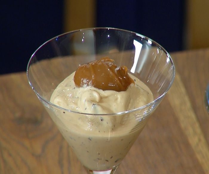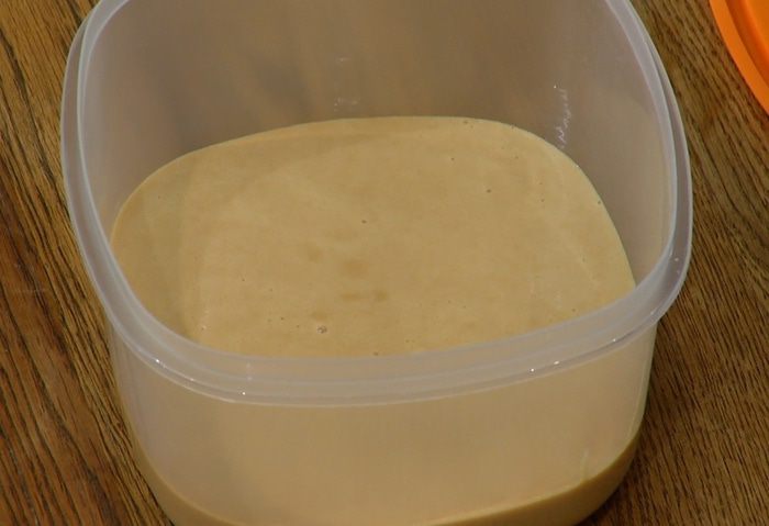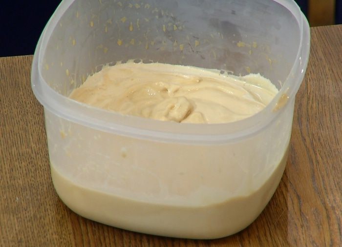 Перелить массу в контейнер, закрыть крышкой и отправить в морозильник, периодически перемешивая, или приготовить в машинке для мороженого.