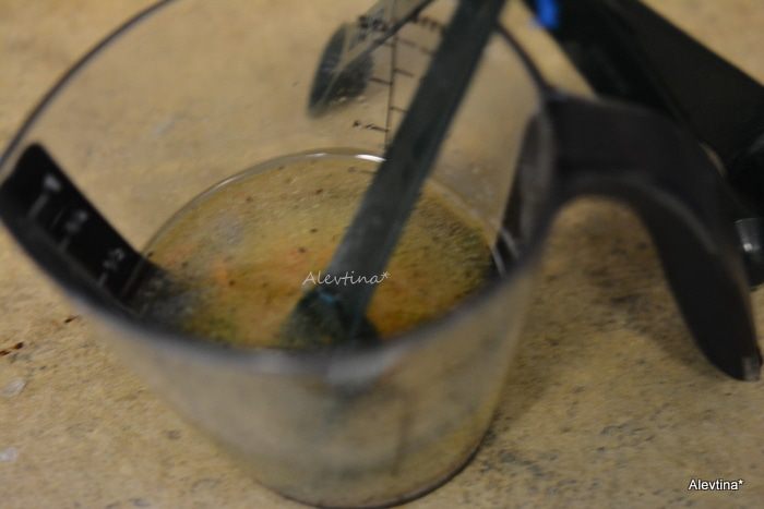 Приготовим заправку в емкости. Все смешав.