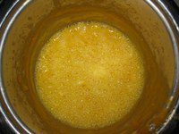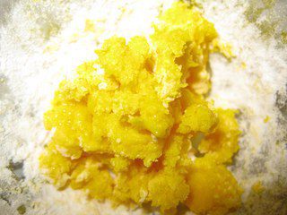 Желток с мукой добавить в тыквенное пюре. Посолить, поперчить и перемешать. Взбитый белок ввести в приготовленную массу и аккуратно перемешать.