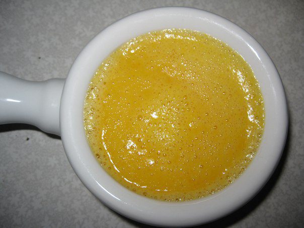 Выложить в форму для суфле. Поставить в разогретую духовку на 25 минут.