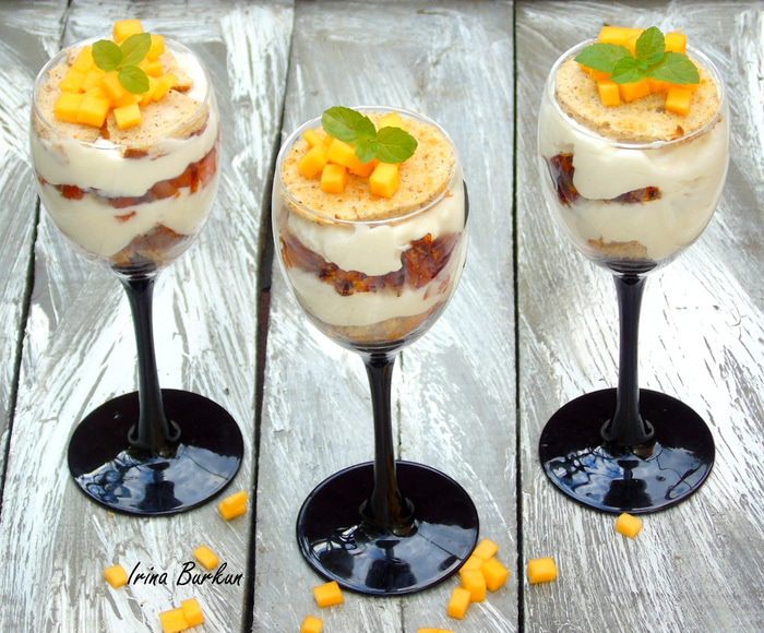 Этот десерт что-то на мотив знаменитого итальянского десерта "Ricotta е pera", только груши я заменила на тыкву и хочу сказать, что получилось волшебно вкусно.