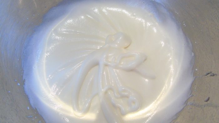 Белки с сахаром взбейте в мягкую меренгу.