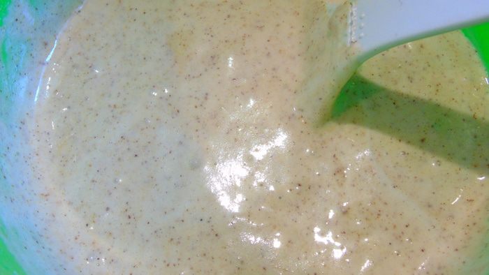 Не прекращая взбивать постепенно вводит фундучную муку и пудрой.