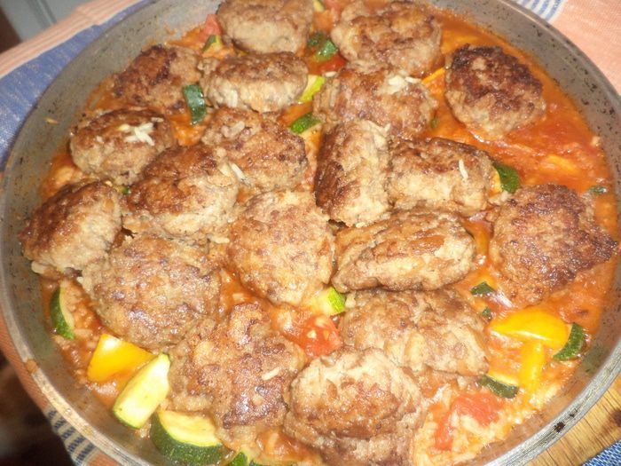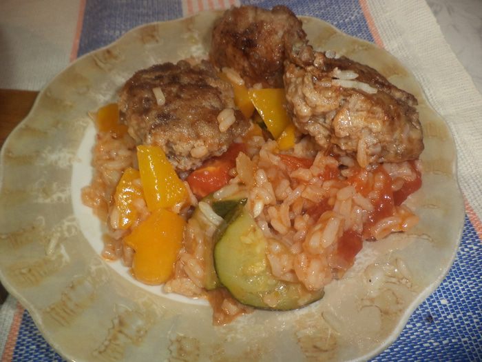 Сегодня хочу угостить вас очень вкусным ужином. Это фрикадельки со вкусом корицы и пряный рис с яркими овощами.