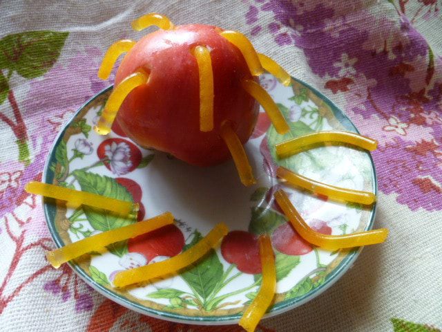 Потом их вывернула и украсила червячками, получился то ли паучок, то ли солнышко.