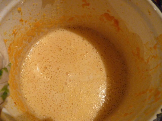 Желатин быстрорастворимый заранее замочила в воде, а затем добавила в горячее тыквенное пюре, полностью растворила и взбила миксером до однородности.
