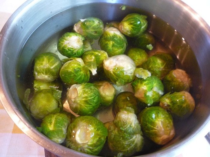 Брюссельскую капусту опустить в кипящую подсоленную воду и варить 10 минут.