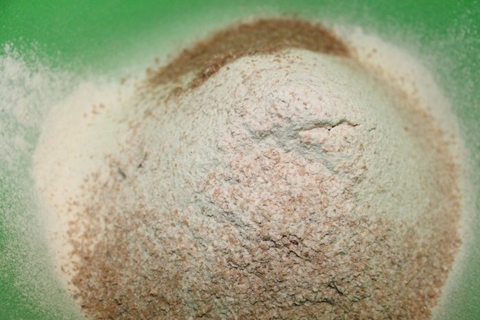 В моем рецепте вместо цельнозерновой муки я использовала смесь цельно зерновую с отрубями. Если у вас такая имеется пеките с ней, если нет берите цельнозерновую муку.