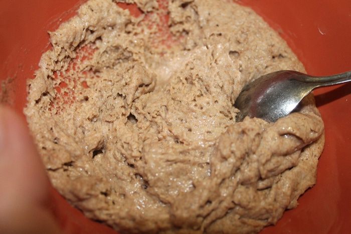 В миске смешать муку и отруби.