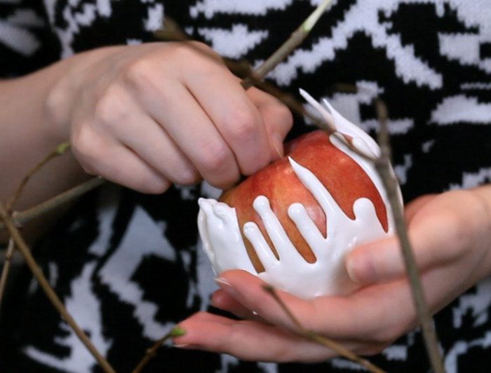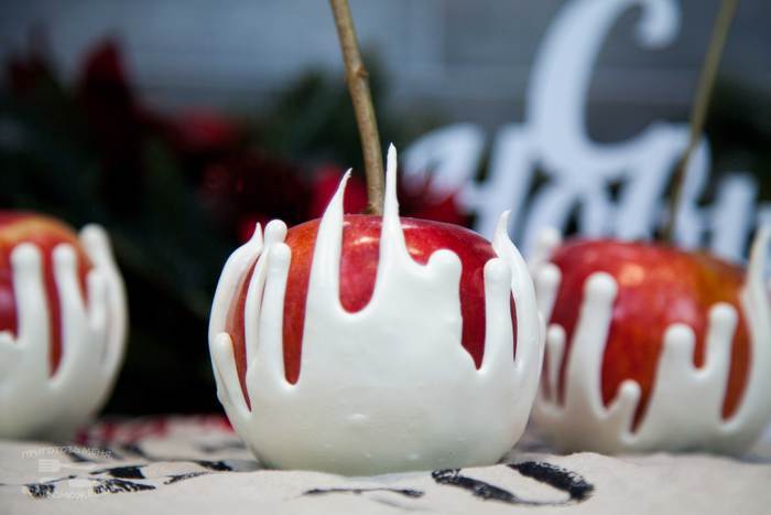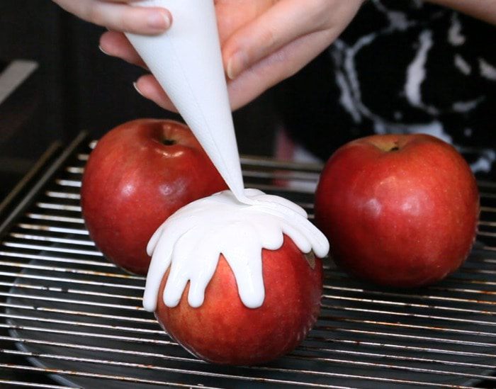 Переложить глазурь в кондитерский мешок. Украсить яблоки.